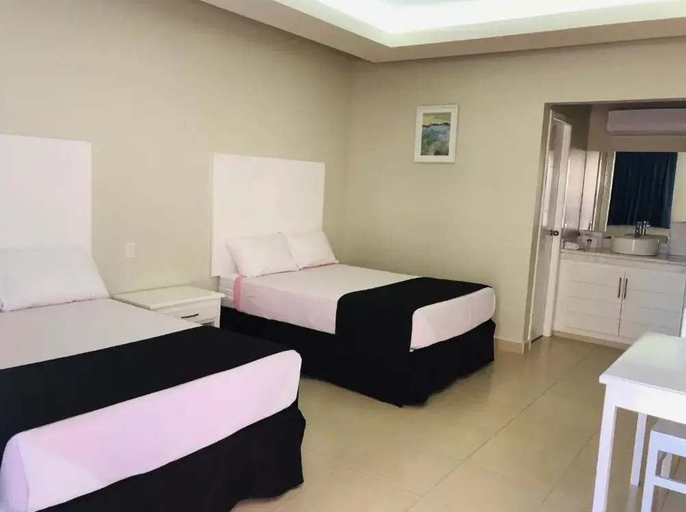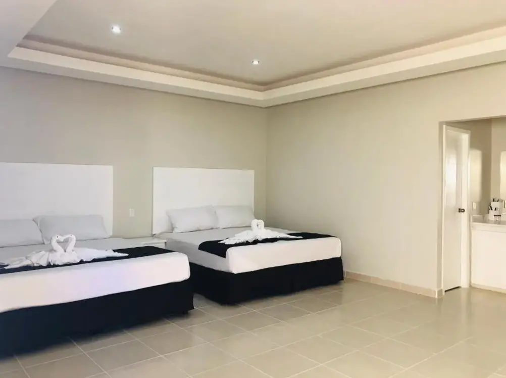 Está sobre una avenida principal, en una placita pero con su estacionamiento propio lo cual está genial, además hay diferentes tiendas cerca. Tiene una pequeña alberca, que por la temporada no usamos, pero está en buenas condiciones. Reservé 2 habitaciones y al momento de hacer la reserva en esta aplicación, puse que prefería que las habitaciones estuvieran cerca, y estaban justo al lado una de la otra. El acceso a las habitaciones se realizó sin problema, la chica de recepción muy amable, ambas habitaciones estaban muy limpias y ordenadas; contaban con algunos artículos de aseo personal lo cual es un plus, además toallas y cobertores. Agua caliente en las regaderas sin problema. Tuvimos cortesías de desayuno, el cual era básico pero buen sabor y suficiente cantidad. Fuimos en temporada alta y quedamos muy conformes con todo